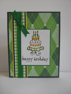 This card was made using scraps, my favorite thing to do (just don't like wasting paper.) Everything was layered with olive green and trees were stamped on top of the tree paper.